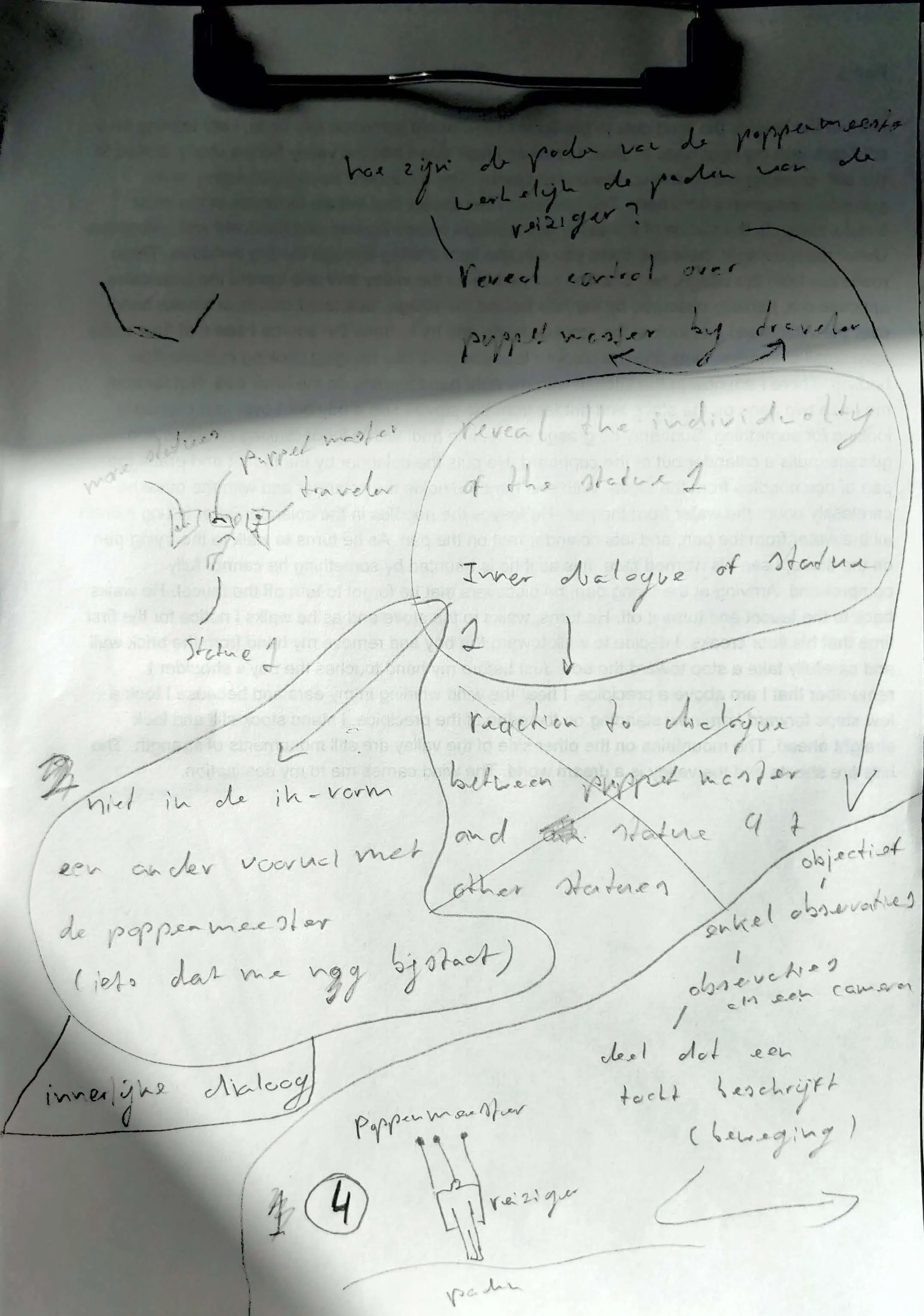 De reiziger wordt beschermd door de vrouw in het gewaad (de moeder van de aarde). Zij heeft hem bevrijd van de poppenmeester.